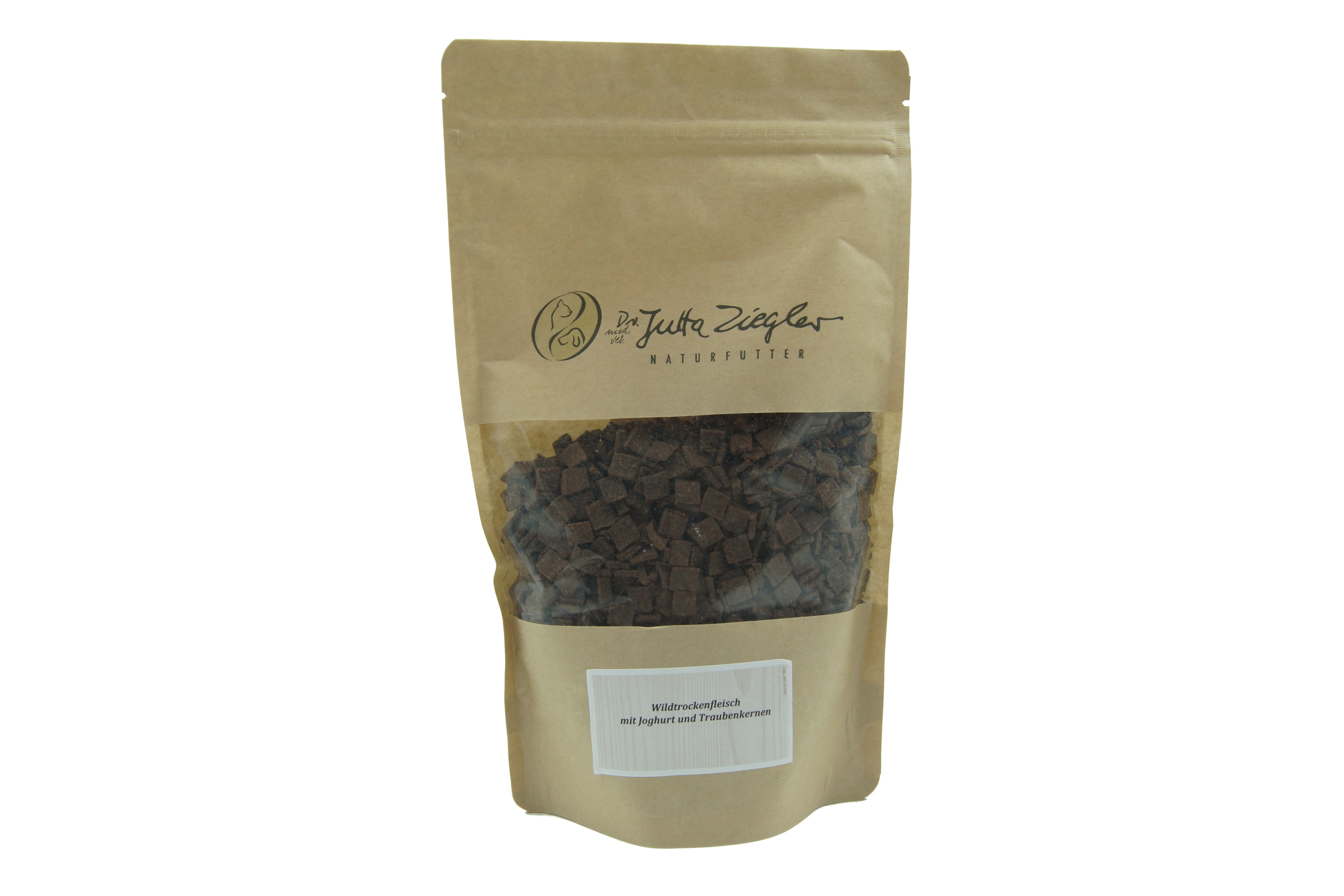 Wildfleisch, Kartoffelstärke, 3% Joghurt, Milchsäurebakterien, Mineralstoffe, Traubenkern