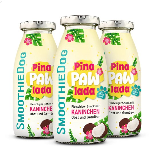 Der PinaPawLada vereint sommerliche Frische mit wertvollen Zutaten: Kokos sorgt für echtes Sommerfeeling – 100 % alkoholfrei, mit natürlicher Wurmabwehr und Laurinsäure fürs Immunsystem. Kaninchenfleisch liefert hochwertiges Eiweiß, B12, Eisen und Zink – ideal für Muskeln und Abwehrkräfte. Pastinake unterstützt die Verdauung, Birne, Apfel und Banane liefern Vitamine, Energie und stärken Herz und Magen. Perfekt für heiße Tage – als Snack oder Hundeeis!
